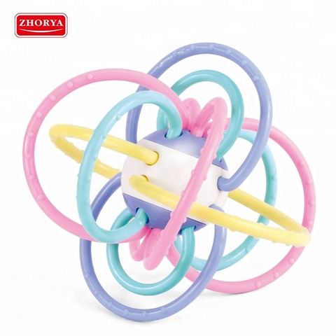 Zhorya integrado en cuentas rodantes agitar sonido juguete bebé salud mordedor bola para venta al por mayor juguete suave