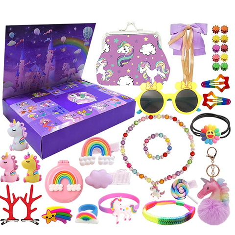 Zhorya Navidad cuenta regresiva Calendario de Adviento caja unicornios regalos joyería maquillaje juguetes conjunto calendario caja ciega para niñas