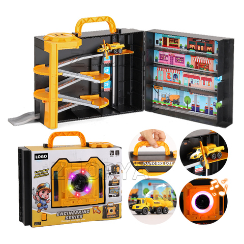 Zhorya Diecast Car Storage Helmet Box Portable Parking Lot Toy Set para niños